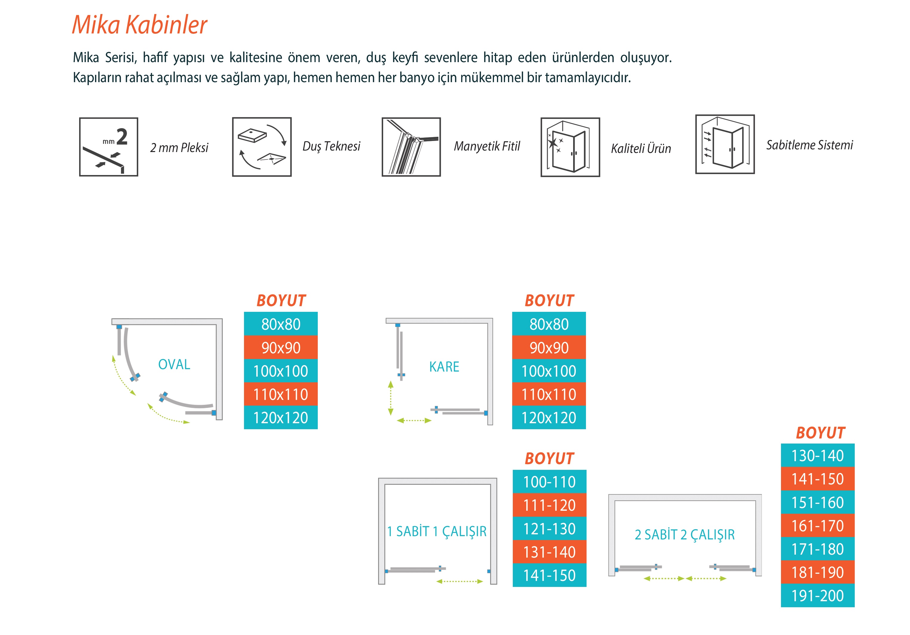 Mika Serisi,hafif yapısı ve kalitesine önem veren,duş keyfi sevenlere hitap eden ürünlerden oluşuyor. Kapıların rahat açılması ve sağlam yapı,hemen hemen her banyo için mükemmel bir tamamlayıcıdır.